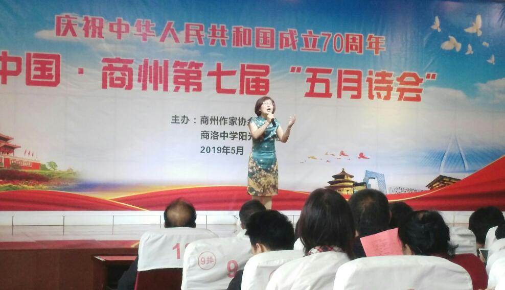 5月11日,由商州作家協會和商洛市中學陽光文學社聯合舉辦的慶祝中國人民共和國成立70周年“中國.商州第七屆五月詩會"在商洛市中學隆重舉行。著名作家、《小說月報》執行副主編劉潔,商洛市文聯副主席、商洛市作協主席魚在洋等到會指導,市直單位作家詩人、商州、洛南、丹鳳、山陽作協部分會員以及商洛學院、商洛市中學師生500余人參加詩會。