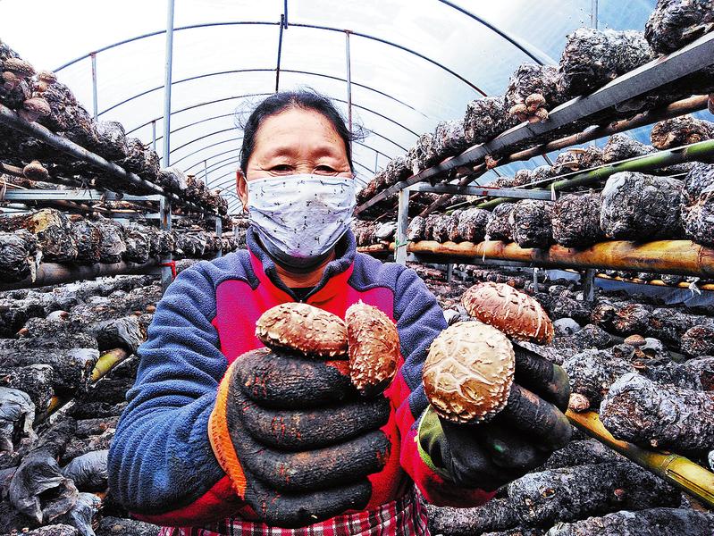 4月3日,春和景明。記者來到商州區(qū)陳塬街道辦事處邵澗村,從國道下車走進一個叫廟溝渠的山溝里,步行約1.5公里山路,一排排塑料大棚赫然出現(xiàn)在眼前。這些大棚建在一面山坡的坡臺上,40多座食用菌大棚鱗次櫛比,白色的塑料大棚在陽光下熠熠發(fā)光。走進大棚,鑫程綠特食用菌專業(yè)合作社負責(zé)人肖超和務(wù)工人員在摘香菇。肖超手捧長滿了香菇的菌棒,高興地說:“今年香菇出菇率很高,香菇不但長勢良好,而且品相好、質(zhì)量高。自3月初復(fù)工復(fù)產(chǎn)以來,每天上勞10多人,每日可采摘鮮香菇900多公斤。”