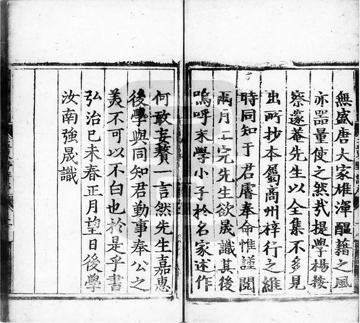 提學楊按察邃庵先生以‘全集不多見’出所抄本,屬商州梓行之。維時同知于君睿奉命惟謹,閱兩月工完。先生欲晟識其后,嗚呼!末學小子于名家述作何敢妄贅一言?然先生嘉惠后學與同知君勤事奉公之美,不可以不白也,于是乎書。