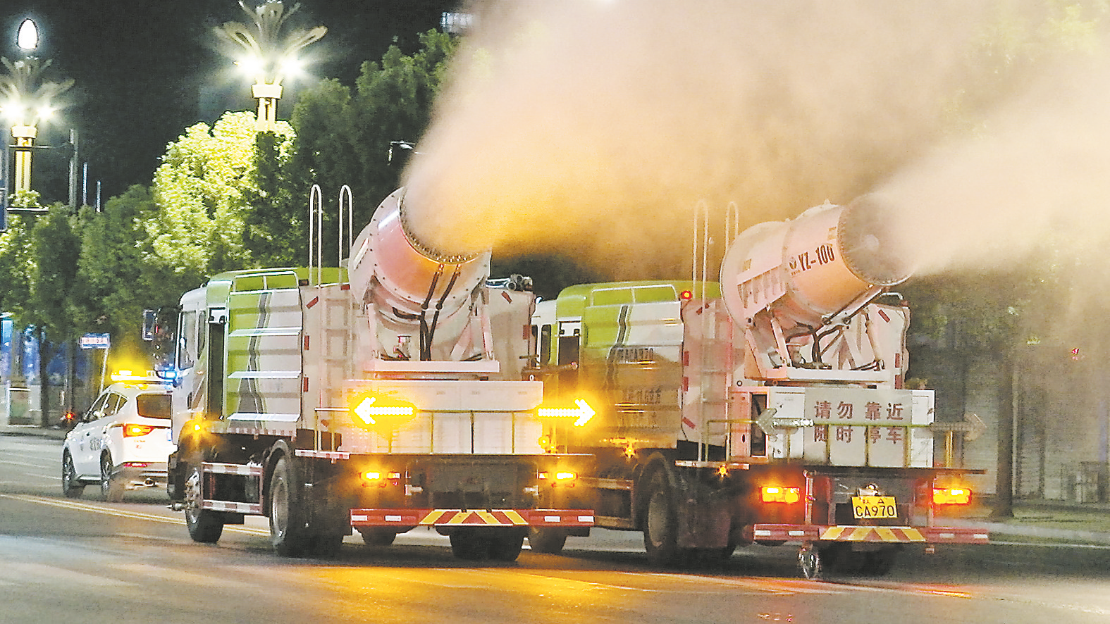 連日來,商州區城管局組織10名專業消殺人員,動用兩臺10噸重的大型霧炮車,于每天晚上11點開始,作業4個小時,對城區44條街道開展為期一周的地毯式消殺,切實阻斷新冠病毒傳播途徑。