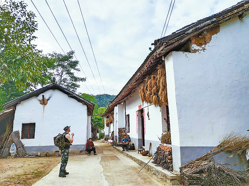 沿著水泥路前行,核桃板栗鋪滿山坡,林間套種莊稼蔬菜。迎面遇見一位老人,告訴我們郭溝嶺上原來有10多戶人家,目前只有幾個(gè)老人在家了。