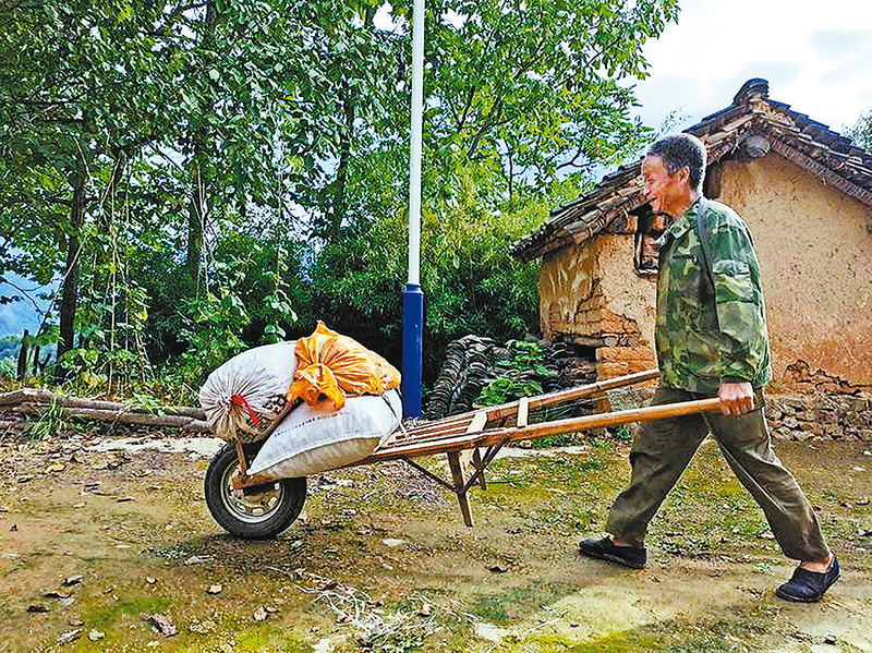 推著獨(dú)輪車的山民