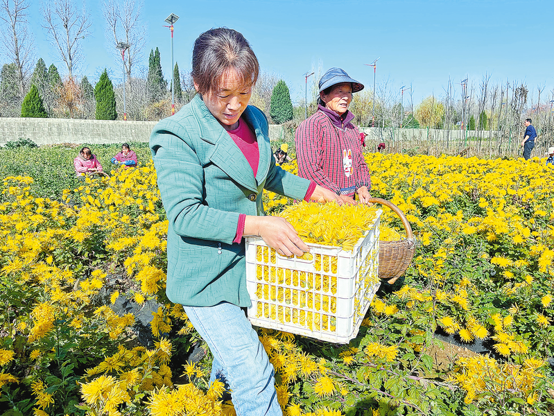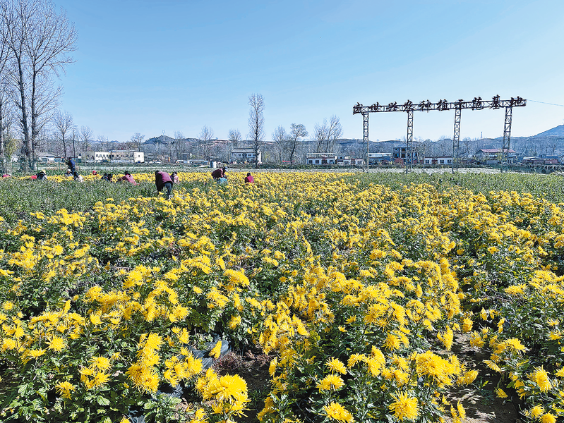 “我們種植了50畝金絲皇菊和杭白菊,采摘時間從11月開始,整個花期約一個月,這次按照成熟度,先采摘金絲皇菊。”盛世興農種植示范基地管理人員介紹,今年4月份基地栽種菊花幼苗,經過培土、起壟、施肥、移栽、滴灌、蓋地膜等流程,菊花在11月份成熟,預計金絲皇菊、杭白菊畝產分別在1000公斤、1100公斤,年收益28萬元左右,直接帶動周邊200多名村民就近就業增收。
