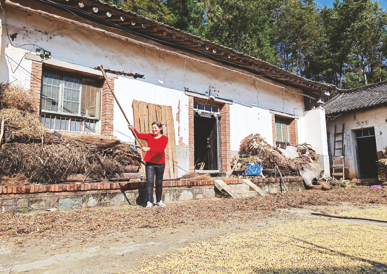 從中心村向北,鉆進一條陡峭的山谷,水泥路兩邊是繁密的栗子樹,葉子被秋風染得金黃。用腳隨便撥拉幾下路邊的落葉,滾出不少毛栗子。