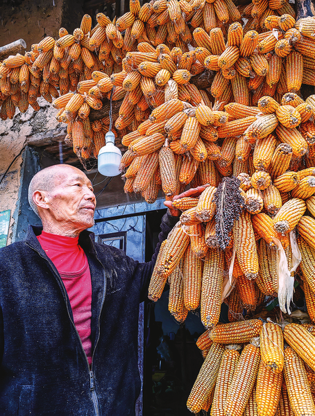 今年67歲的袁茂春老人看著秋收的玉米,臉上露出欣喜之情。
