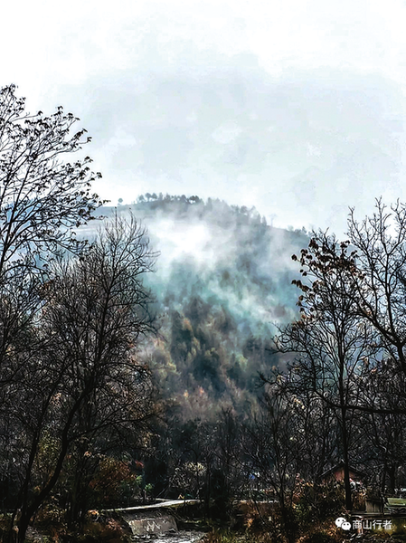 我們冒著雨夾雪,走在主溝的水泥路上,路邊是一行核桃樹,葉子已經落盡,耕地平坦,莊稼收過,民居臥在坡根,多為磚混結構,還有一棟漂亮氣派的別墅。