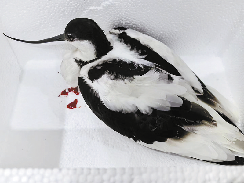 韓先生的女兒韓金宸是商洛市小學三年級學生,平時對鳥類很感興趣,經過女兒查詢鳥類科普書籍及朋友圈熱心朋友的辨認,該鳥可能為反嘴鷸,屬于國家保護動物。由于該鳥胸腹部受傷出血,韓先生父女帶著鳥尋求寵物店的幫助,可是時間較晚,寵物店都已關門,韓先生便去藥店買了止血類藥粉敷在了鳥兒的傷口上,并進行了簡單的處理。