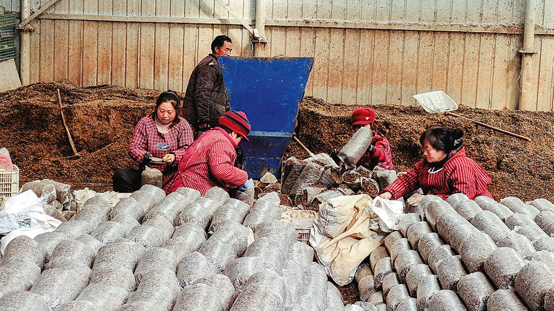 “每年春季開始生產(chǎn),邊做棒子邊生產(chǎn),蒸好以后滅菌、接種,然后就要出菇了。一年加工20萬袋,很實(shí)惠。”秦關(guān)社區(qū)產(chǎn)業(yè)大戶陳民干說。