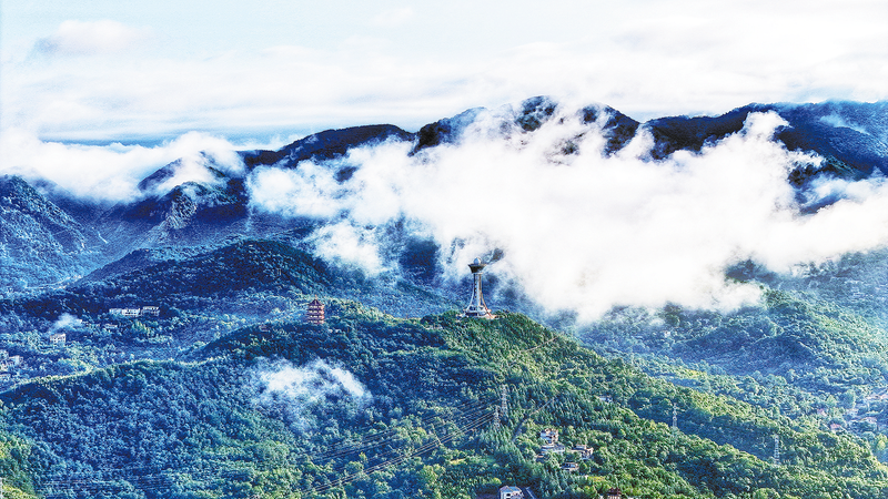 近日,雨后的商州區金鳳山上,繚繞的白云與山上的植被相呼應,形成了一幅優美的生態畫卷。 (本報記者 楊 鑫 攝)