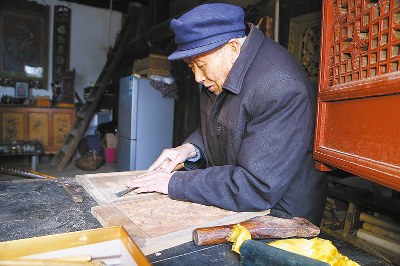 “我最喜歡的是花鳥、人物,我有時間了就做一做。心情好了,多做一些;心情不好了,少做一些。”1月4日,86歲的郭樹壽老人說起木雕,滿是皺紋的臉上掛滿了笑容。