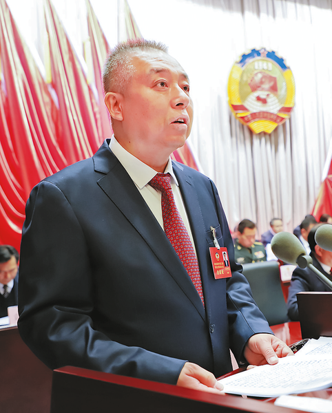 2月26日上午,市政協主席王寧崗代表政協商洛市第五屆委員會常務委員會向大會作工作報告。 (本報記者 李 敏 攝)