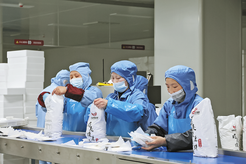 走進(jìn)陜西緣聚張宏超肉夾饃超級(jí)工廠,一袋袋面粉進(jìn)入料箱后,經(jīng)過(guò)機(jī)器和面、滾揉、切割、卷筒等一系列工序,一個(gè)個(gè)餅胚從生產(chǎn)線緩緩流出……工人正緊張而有序地忙著作業(yè)。該項(xiàng)目是陜西緣聚在陜建設(shè)的規(guī)模最大、品類最全的工廠,是搶抓西商融合發(fā)展機(jī)遇,招引的工業(yè)化、智慧化、品牌化的食品加工標(biāo)桿企業(yè),更是全力打造全國(guó)陜菜商州“智”造的西商協(xié)作示范引領(lǐng)項(xiàng)目。項(xiàng)目總投資6000萬(wàn)元,于今年4月正式投產(chǎn)。主要生產(chǎn)潼關(guān)餅胚、臘汁肉、油潑辣子等產(chǎn)品,滿產(chǎn)后可實(shí)現(xiàn)年產(chǎn)值2億元、稅收1192萬(wàn)元,帶動(dòng)當(dāng)?shù)匕儆嗳司徒蜆I(yè)。