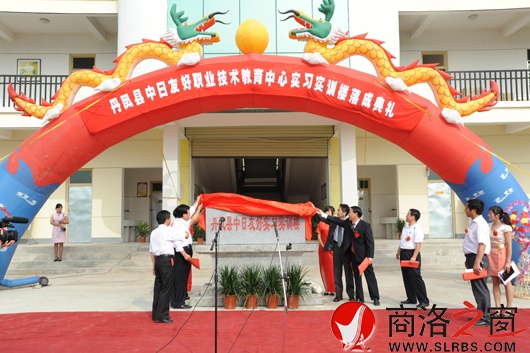 本網訊 6月29日,由日本駐華大使館向丹鳳縣捐資1000萬日元援建的利民工程“中日友好職業技術教育中心實訓樓”舉行竣工剪彩儀式。日本駐華大使館經濟部一秘鲇澤良史、經濟部利民工程助理馬場奈緒,中國社會科學院工會常務副主席鐘代勝出席剪彩儀式并揭牌。該實訓樓的建設將對丹鳳職業教育的發展和提高勞動者素質具有積極的促進作用。(彭琦財/攝)