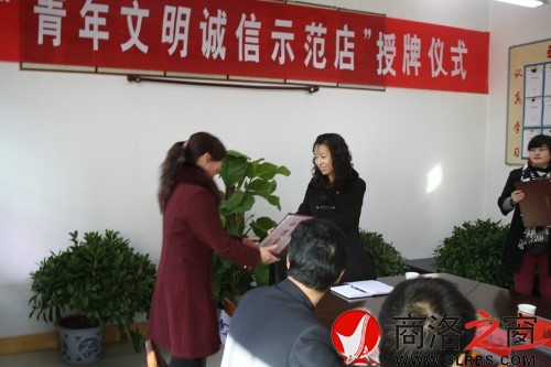 本網訊 (呂 琨 周燁明 攝)共青團商南縣委聯合地稅、工商等部門在全縣積極開展“青年文明誠信示范店”創建活動,有6家國企或私營門店經多環節嚴格考核評選脫穎而出,并于近日被授牌命名。