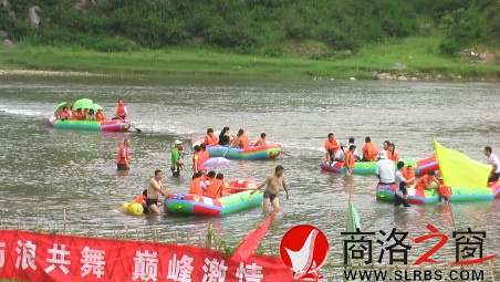{圖片新聞:近日,烈日炎炎,洛南縣金三洲洛河漂流景區(qū)內,車水馬龍,游人如織,格外熱鬧,尤其是7月21日、29日,單日接待游客分別達260、280人次,屢創(chuàng)新高,累計接待游客3000人次,旅游收入10.5萬元。迎來開業(yè)以來的首次旅游高峰,實現洛河漂流旅游的開門紅。圖為游客盡情享受洛河漂流驚險刺激感受和沿線的迷人風光。