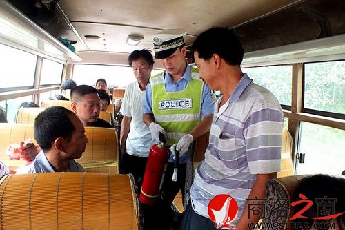 本網訊 (寧啟幸)鎮安交管大隊注重對廣大乘客的安全自救常識教育培訓,以提高公眾在突發災害時的應急自救能力。圖為民警在向乘客講解滅火器使用方法。