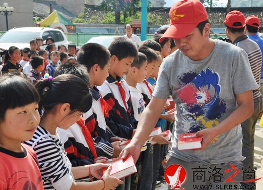 九月五日,共青團洛南縣委、洛南縣義工聯合會共同組織開展“愛心字典,點亮人生”捐贈活動,為巡檢鎮中心小學等四個學校六百余名學生送去字典、書包等價值六千五百余元的學習用品。(王高鋒 攝)