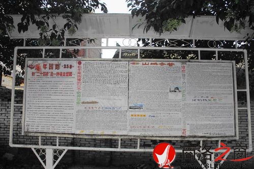 這是一面用鋼管和鐵皮焊成的老式板報架子。它高約3米,頂端為人字形,下面用兩根胳膊粗的鋼管作支撐,板報長3.3米,寬1.2米。最近一期的板報,是“總第259期”。首篇是《新二十四孝給人的善意提醒》,后面還有歷史故事、生活常識、醫療保健等內容,諸如《沒有錢不要緊》、《山城今昔》、《韶山毛澤東銅像的幾個故事》、《康熙膝下為何多逆子》,一看題目,就激起眾人的閱讀興趣。