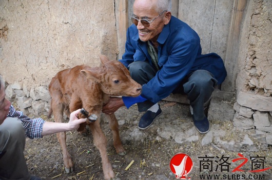 經(jīng)過測量,這頭小牛犢體約一米,體重40公斤,在緊挨其右前肢后向后斜生出一條長38公分的腿,膝關(guān)節(jié)處向前呈90度彎曲。很奇怪的是,這第五條腿末端長有兩只蹄子。牛犢主人78歲的李義發(fā)介紹,10天前的清晨,已經(jīng)10歲的老母牛產(chǎn)下這頭畸形牛犢,在這之前已經(jīng)產(chǎn)過四胎,前三胎牛犢均正常。“我都快80歲了,從來沒見過這事,附近的村民聽說后都好奇前來觀看。”李義發(fā)說,他們這里養(yǎng)牛的很多,都是當?shù)氐耐僚#骷业呐=?jīng)常跑到一起,還不知道母牛是和哪只公牛產(chǎn)下的這牛犢。但可以肯定的是,由于交通不便,當?shù)厝罕娢古6际寝r(nóng)作物秸稈和山上青草,應該不是因飼料污染引起的畸形。