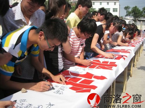 商洛日報(bào)訊(劉春榮 余慶剛 胡蘭)6月3日,丹鳳中學(xué)參加高考的學(xué)生在“公正公平、誠信陽光”橫幅上自愿簽名。高考前夕,各地教育部門和高中學(xué)校積極開展誠信教育,引導(dǎo)學(xué)生樹立公平誠信意識,正當(dāng)參與高考競爭。