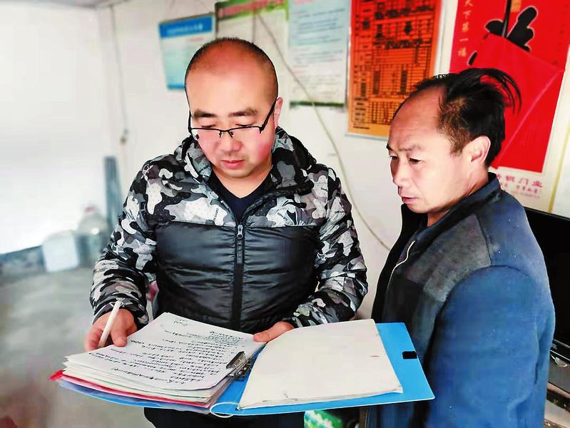 張樂在五組貧困戶毛易友家核實產業收入,為下一步發展做好計劃。