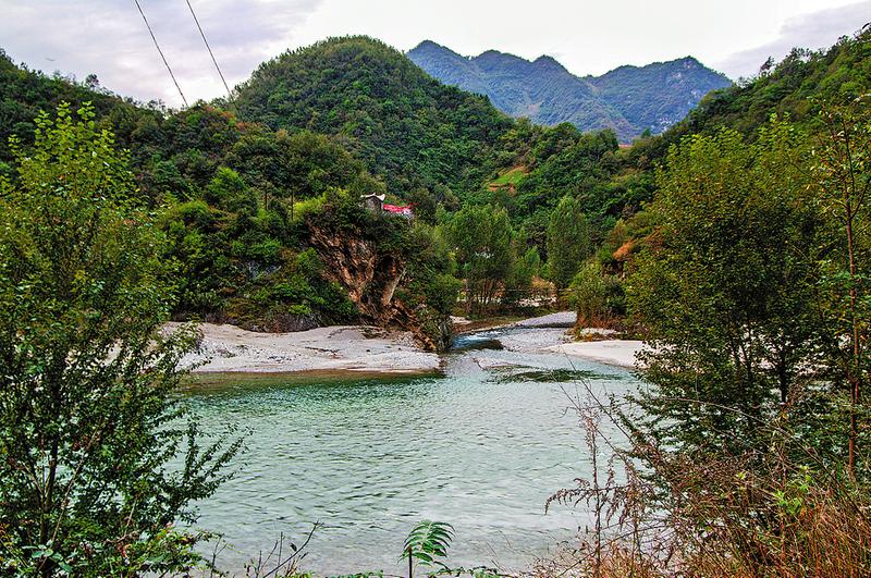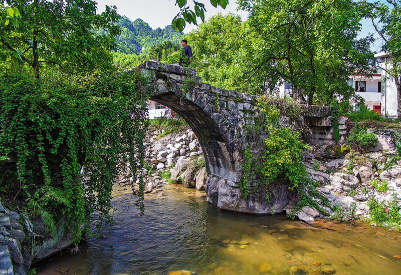 依依惜別龍?zhí)叮傩蕾p沿途的山水風(fēng)光,從火燒橋出四海坪,不遠就到了文家廟。文家廟一帶自然景觀有蓮花山、犀牛洞,名勝古跡有清代石拱橋、鄒家大院等。