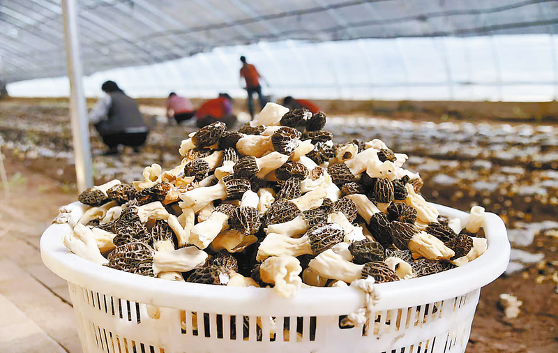 在蒿坪村的食用菌產業園里,豐收的羊肚菌甚是喜人。