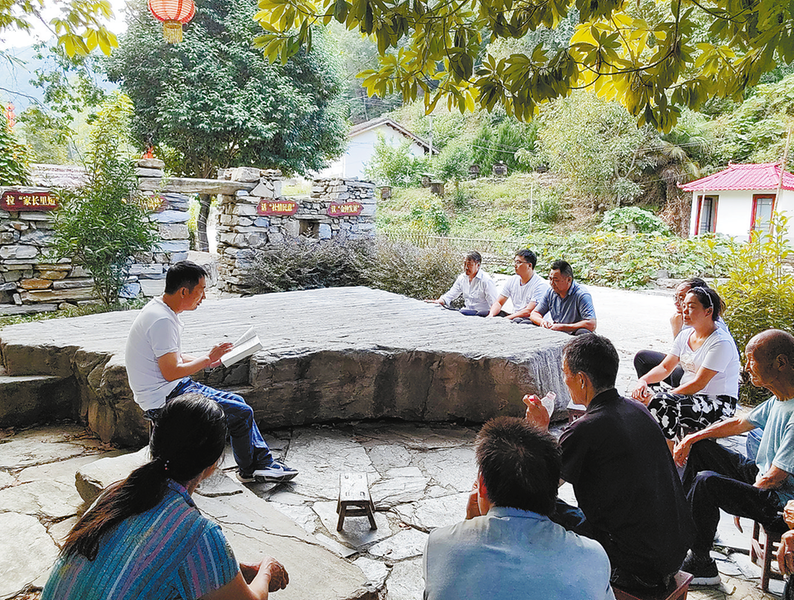 王習(xí)堯在“石墻議事角”為村民宣講法律法規(guī),收集民情民意。