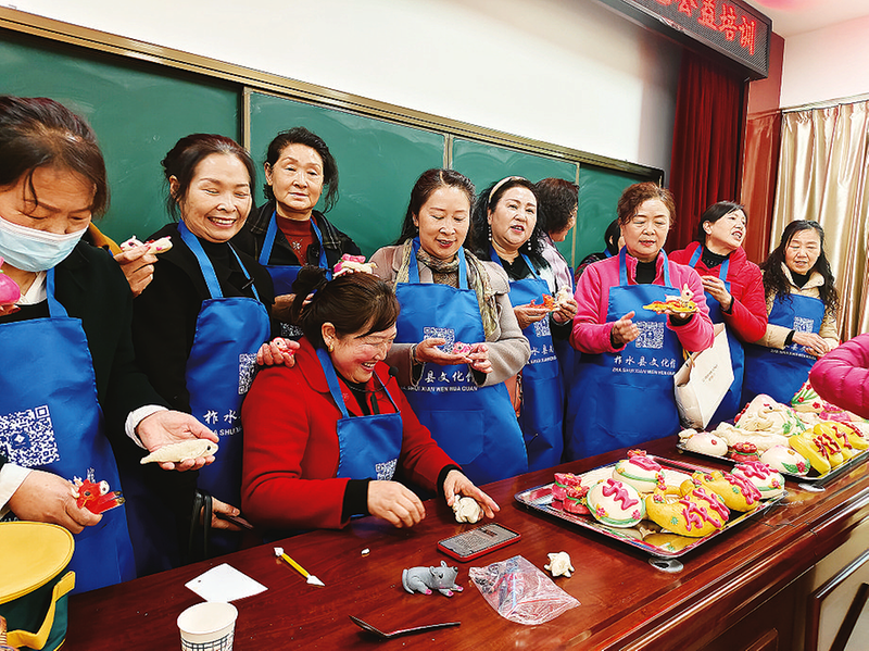 學(xué)員們聽得仔細(xì)、學(xué)得認(rèn)真,培訓(xùn)氛圍輕松活躍。“這些作品真是太漂亮了,蒸熟了都不舍得吃。”學(xué)員們邊說邊拿出手機(jī)給自己的作品拍照,發(fā)朋友圈。“學(xué)做花饃的過程太有意思了,我想學(xué)會做花饃,傳承好這個傳統(tǒng)技藝,也讓我們這些家庭婦女有自己的愛好和手藝。”參加活動的王大姐高興地說。