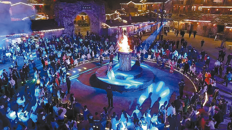 柞水縣終南山寨景區熱鬧的篝火晚會