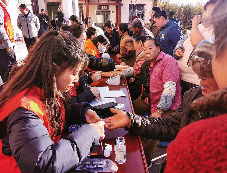 志愿者為群眾測血糖