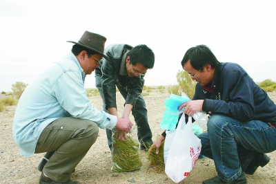 鐘揚(yáng)(左一)在可可西里采集植物。復(fù)旦大學(xué)供圖